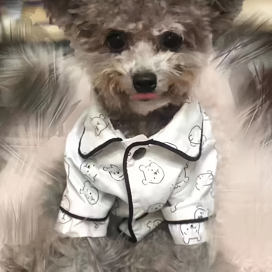 Cozy Cartoon Cat Pattern Pet Sleepwear - Soft, Breathable, Spring\u002FSummer Style for Small Cat & Dog Breeds, Bichon, Maltese, Teddy - Comfortable Home Apparel for Pets